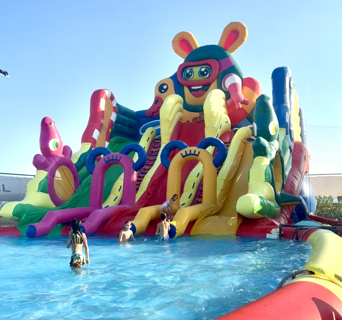 Και για τους μικρούς μας φίλους που αγαπούν το ποδόσφαιρο, υπάρχει και υδάτινο φουσκωτό γήπεδο! Το νερό είναι πολύ ρηχό – μόλις 10 πόντοι – ώστε να μπορούν να παίξουν με ασφάλεια και άνεση.