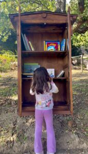 Ο χώρος έχει φτιαχτεί με μεράκι και φαντασία, γεμάτος μικρές πινελιές που δείχνουν την αγάπη με την οποία δημιουργήθηκε. Θα βρεις ένα μικρό ντουλαπάκι γεμάτο παιδικά βιβλία, όπου τα παιδιά μπορούν να καθίσουν και να ξεφυλλίσουν τις αγαπημένες τους ιστορίες μέσα στη φύση.